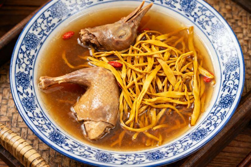 黄花菜温和入胃,炖鸽掌后,能增加脾胃的吸收能力,缓解寒气滞留导致的虚弱感,让体内暖意逐渐积蓄,舒适而自然。