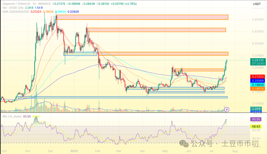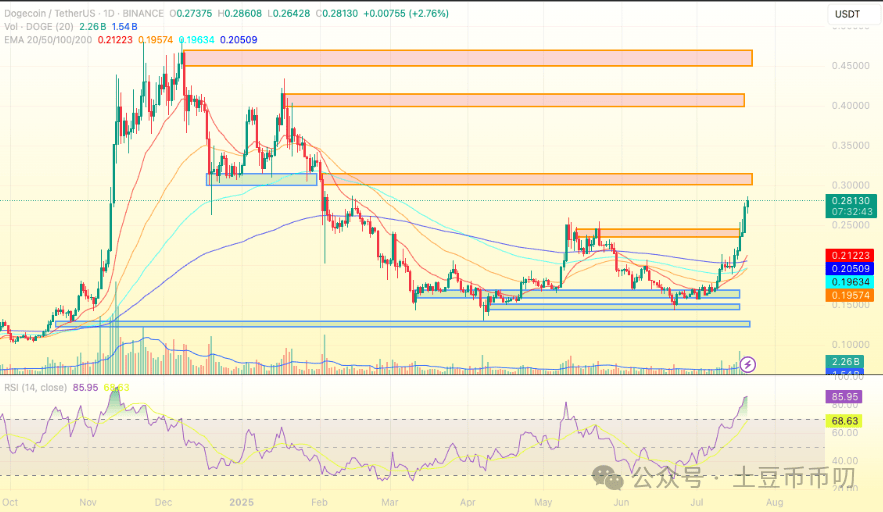 暴增105.6%!DOGE(狗狗币)市值突破429亿!价格企稳0.25,年底直冲1美元?