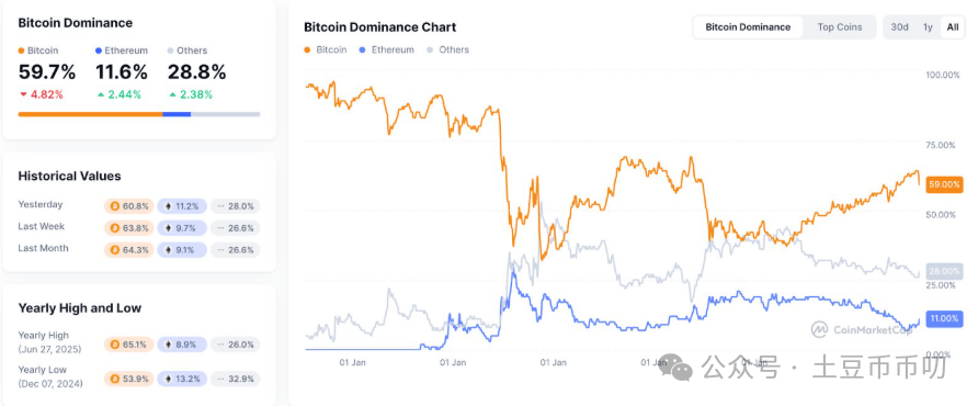 现在比特币的主导地位在下降,资金开始往山寨币流,狗狗币因为大家都熟悉,又有机构认可,分到的资金不少。
