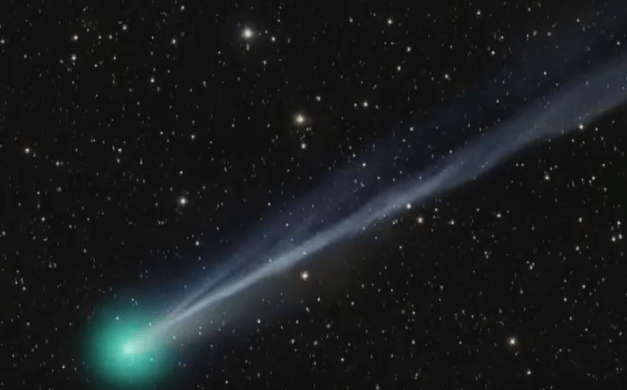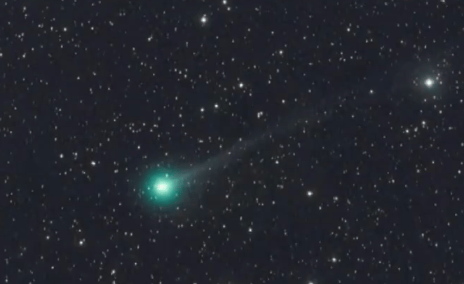 据日本电视新闻网报道,当地时间2日,日本山梨县立科学馆职员臼井圭一郎成功捕捉到莱蒙彗星的身影,它在星海中闪耀出醒目的绿光,彗尾清晰可见。这颗今年1月刚由美国莱蒙山天文台发现的彗星目前在北半球早晨的天空中可见,到10月中旬会转入傍晚天空。它将于本月21日掠过近地点,下次在地球上观测到它需等待约1400年。