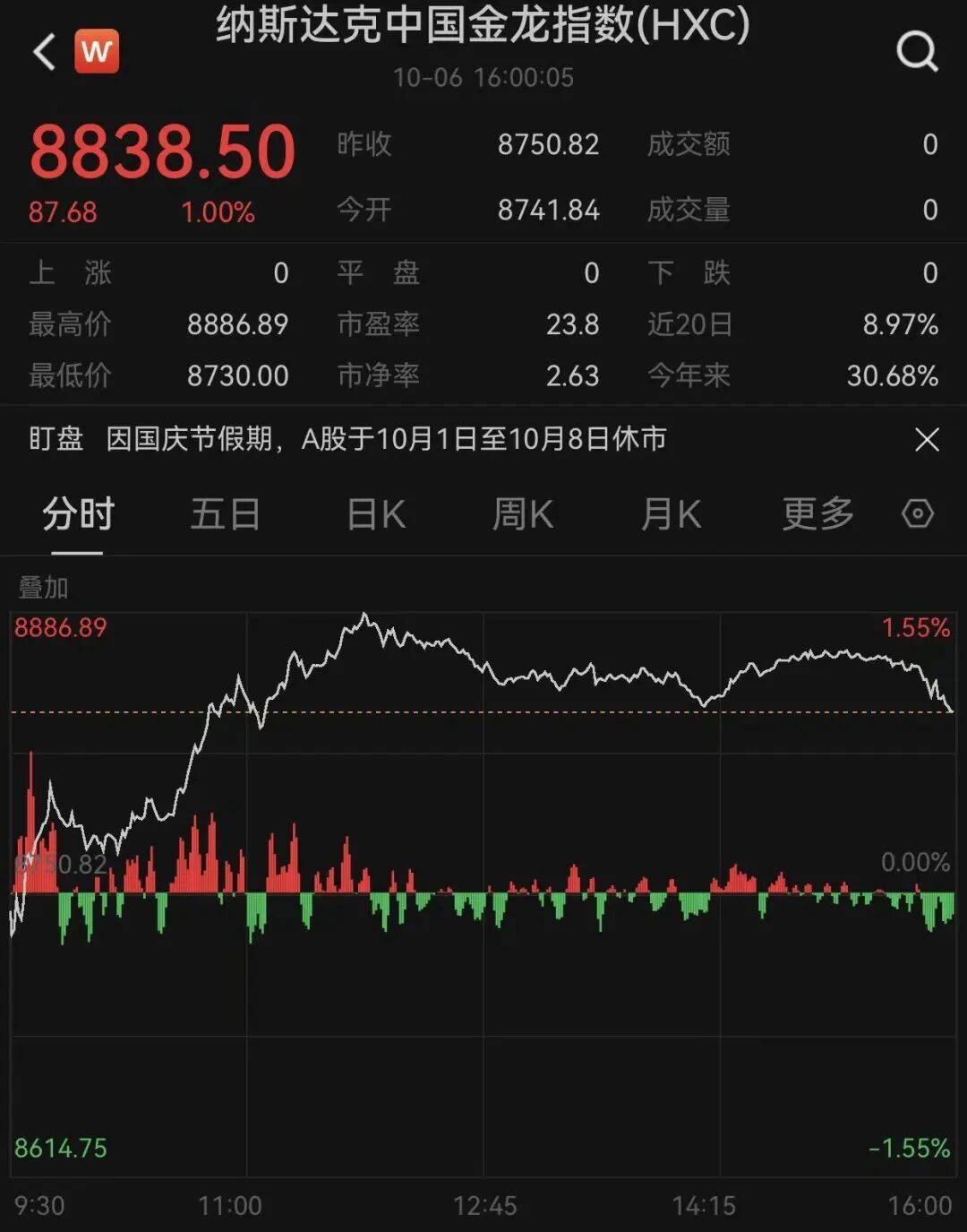 昨夜,中概股集体爆发,明显强于美股,纳斯达克中国金龙指数涨1%,个股方面,满帮集团涨超4%,BOSS直聘涨逾3%,奇富科技涨超2.5%,老虎证券涨逾2.5%,小鹏汽车涨超2%。