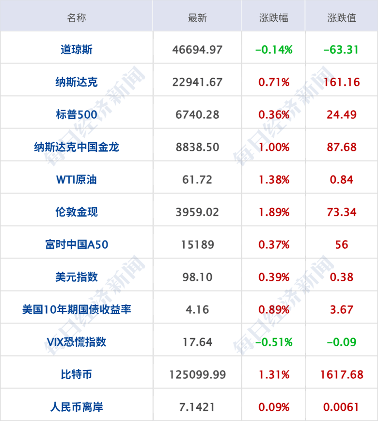 1 隔夜市场 美股三大指数收盘涨跌不一,道指跌0.14%,纳指涨0...