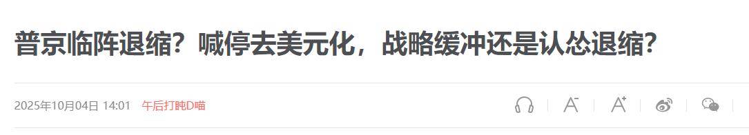 普京最近公开承认,金砖国家内部关于“去美元化”的讨论出现了分歧,甚至他自己也改口表示不再反美元。那么发生了什么事?为什么普京突然改变立场?他在这个时刻的转变有什么深层次的原因呢?