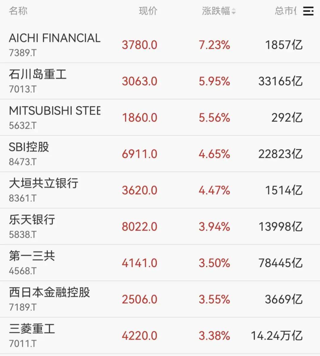权重股方面,石川岛重工、乐天银行、三菱重工等涨幅居前。