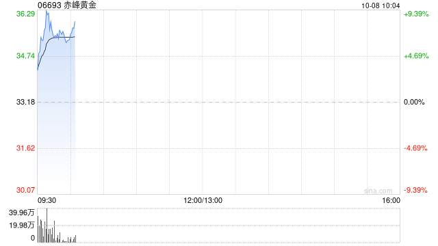 黄金股延续近期涨势,截至发稿,赤峰黄金(06693)上涨6.99%,报35.50港元;紫金黄金国际(02259)上涨5.10%,报154.70港元;山东黄金(01787)上涨1.76%,报40.38港元;潼关黄金(00340)上涨1.65%,报3.08港元。