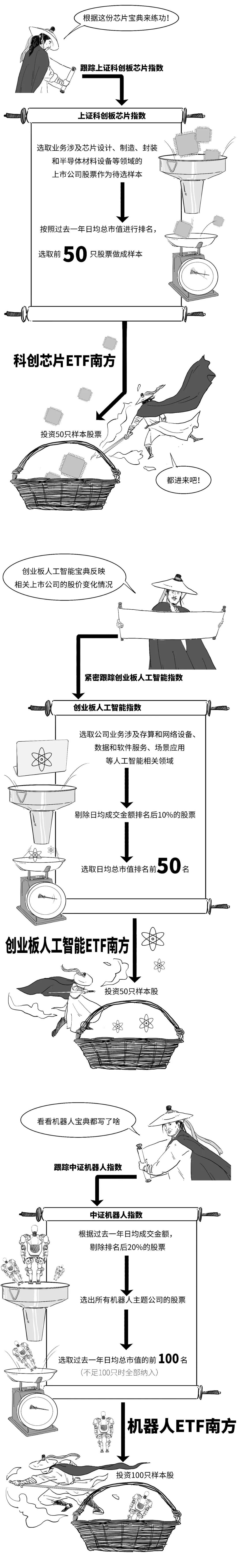 就分别是科创芯片ETF、创业板人工智能ETF和机器人ETF。