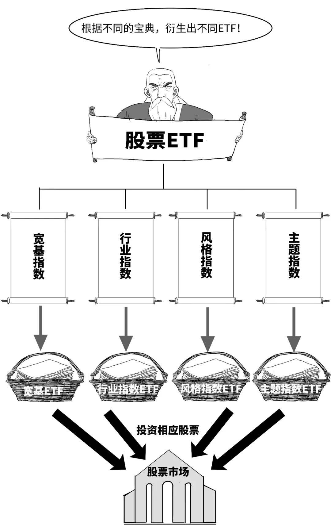 股票指数就相当于一份宝典,上面记载着各种类型的重要股票,而股票ETF是根据这些指数的成分股作为投资对象,通过购买大部分或全部某指数所包含的股票,来构建基金的投资组合。