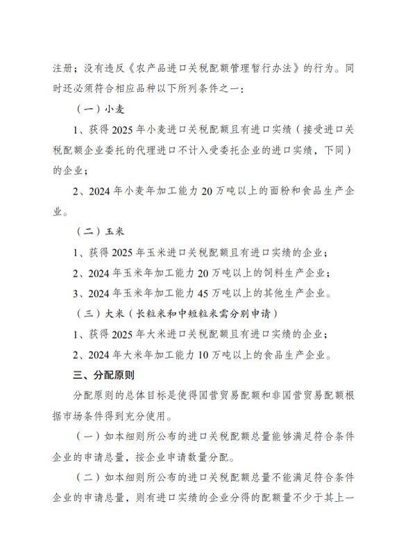 国家发改委发布2026年粮食进口关税配额申请和安排细则