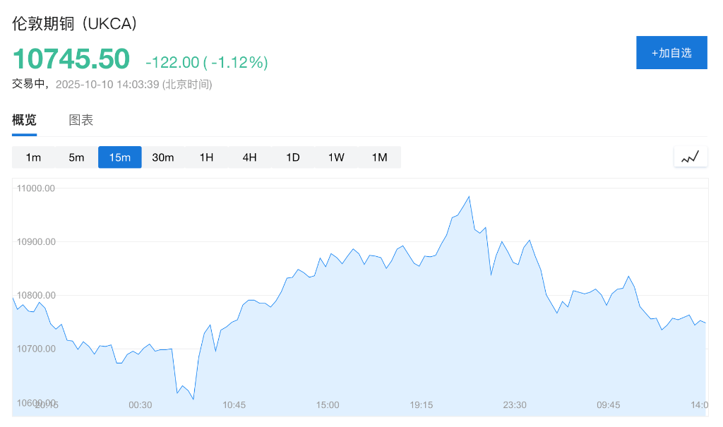 伦敦期铜下跌1.12%至10745.5美元/吨。