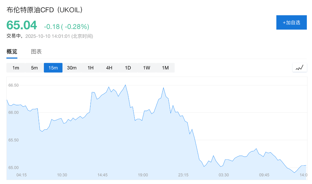 布伦特原油期货下跌至65.04美元/桶。此前以色列和巴勒斯坦激进组织哈马斯签署加沙停火协议,油价走低。