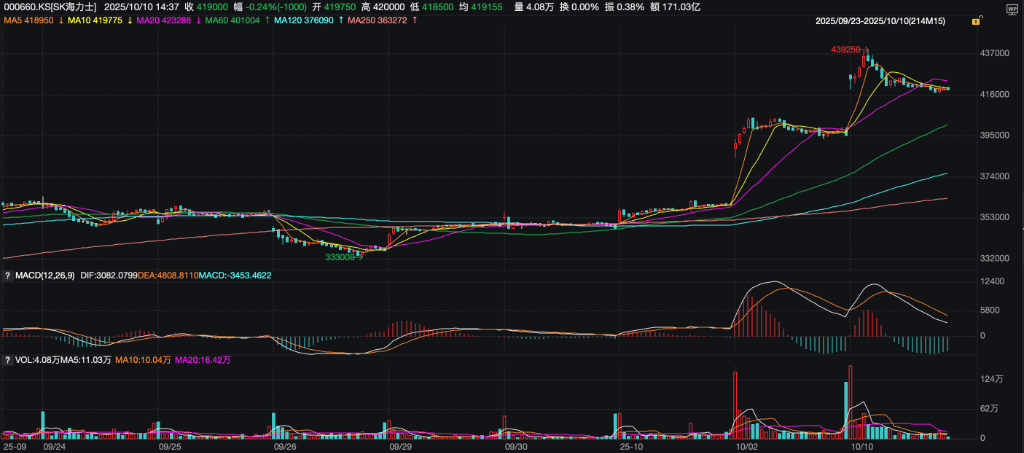 - SK海力士股价一度上涨11%,三星电子上涨6%。