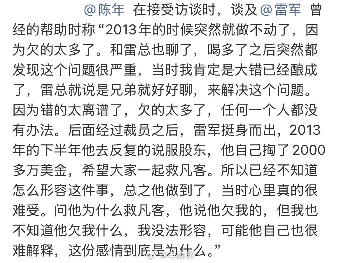 #雷军自掏2000多万美金帮凡客陈年# 自掏2000多万美金救凡客,雷军和陈年的情谊很难得了。