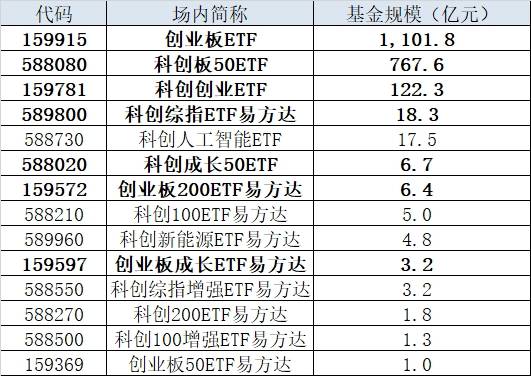 易方达两创ETF规模领跑市场