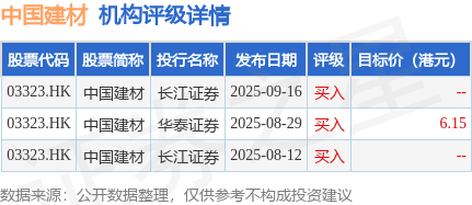 截至2025年10月10日收盘,中国建材(03323.HK)报收于5.72港元,下跌0.52%,成交量3133.45万股,成交额1.79亿港元。投行对该股的评级以买入为主,近90天内共有3家投行给出买入评级,近90天的目标均价为6.15港元。长江证券最新一份研报给予中国建材买入评级。