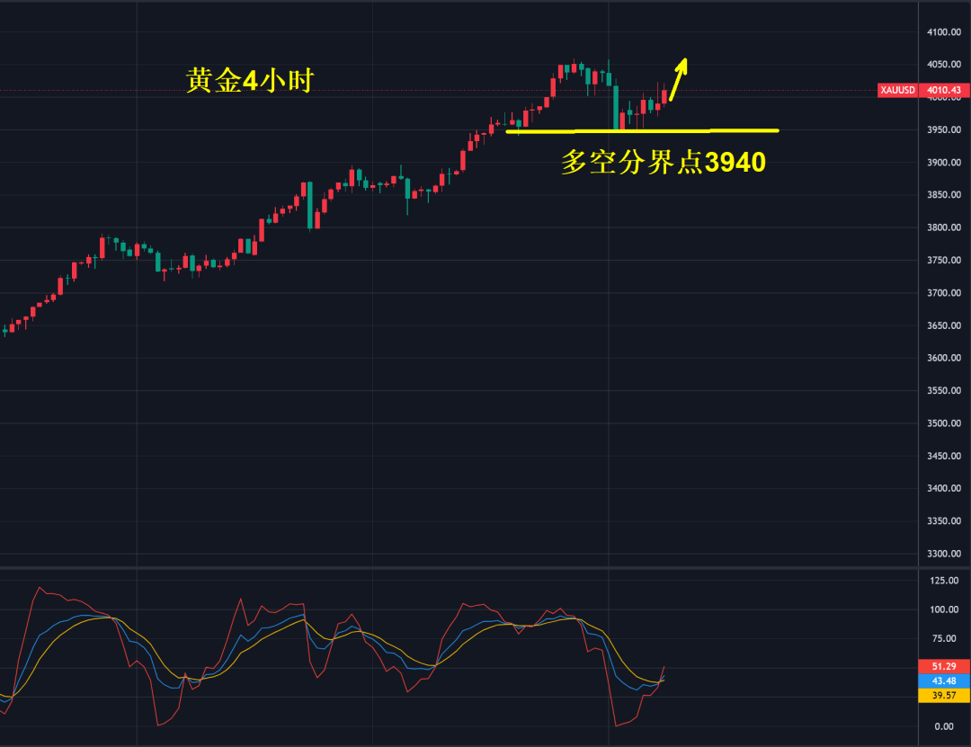 下周一,向上继续关注4025-4035美元的压力位置,阶段性高位震荡修正也是好事,为未来更好的上涨留足空间,修正不是见顶,而是酝酿更大的上涨,过去踏空者可通过“定价”定投的方式持续介入,而不是定时定投,也就是价格每掉5-8元定投一次分批建仓。