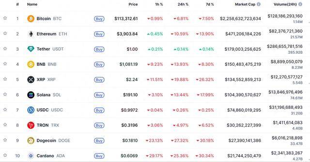 这场暴跌引发的连锁反应迅速席卷整个加密市场,并非只有比特币承压。