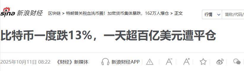 2025年10月11日清晨,全球加密货币市场的剧烈震荡让无数投资者猝不及防,比特币价格从12.2万美元的高位直线跳水,日内最大跌幅一度触及13%,最低下探至10.39万美元,这场“资本绞杀”迅速演变为加密市场有记录以来最惨烈的单日清算事件。