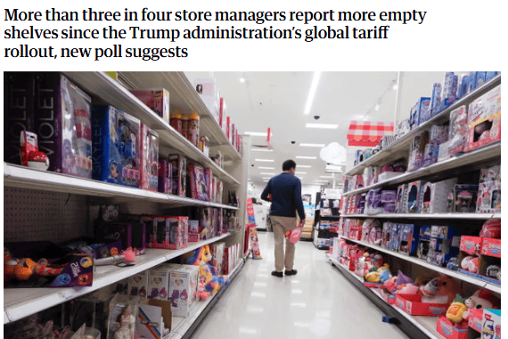 一方面是货架空缺、裁员频发的直观现实;另一方面是价格的渐进式传导,可能在未来削弱美国经济活力与消费者购买力。