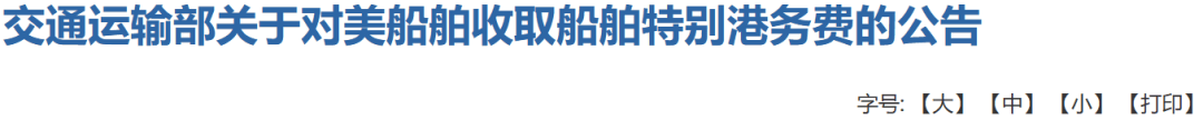 中国交通运输部10月10日发布的公告指出,美国贸易代表办公室于2025年4月17日发布了对中国海事、物流及造船业的301调查措施,计划从10月14日起对中国企业拥有或经营的船舶、中国籍船舶及中国造船舶加收港口服务费。
