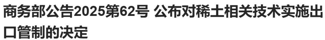 与此同时,商务部还发布了第61号公告,决定对境外相关稀土物项实施出口管制,将管制范围延伸至境外供应链