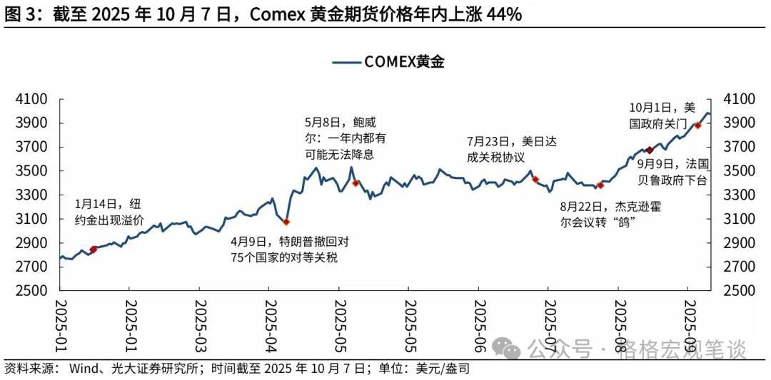2025年国庆假期,黄金价格再次突破历史新高 图片来源:光大宏观团队