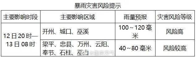 12日夜间,东北部地区大到暴雨(40~80毫米),局地大暴雨(100~120毫米),中西部地区中到大雨(20~40毫米),其余地区阵雨,前半夜局地伴有4~6级阵风,气温16~28℃;中心城区中到大雨(20~40毫米),气温21~24℃。