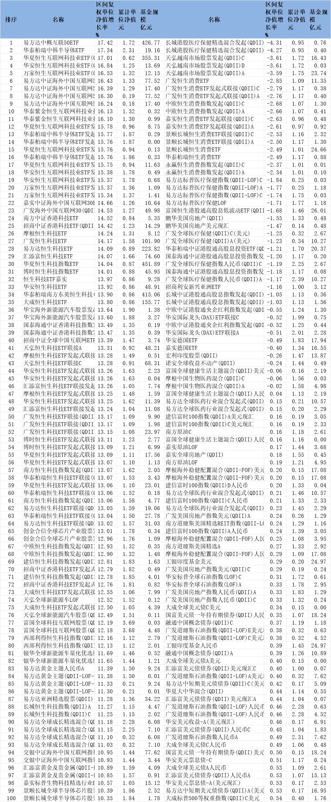 2025年9月份QDII基金涨跌幅前100名