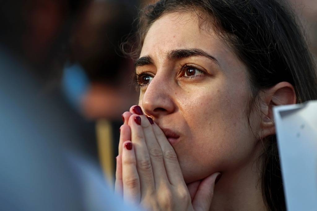 10月13日,以色列特拉维夫,以色列民众在人质广场等待被扣押在加沙地带的以色列人获释。
