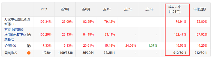 万家中证港股通创新药ETF在去年9月成立,自成立以来的累计回报是79.94%,跑输同期业绩比较基准超过52个百分点。