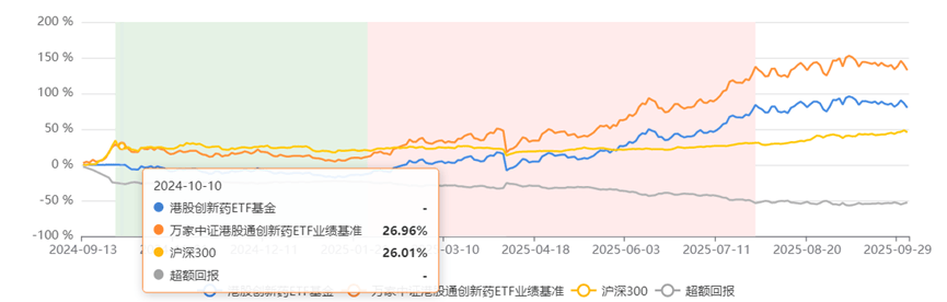 然而,回顾万家中证港股通创新药ETF的历史业绩,却出现一个52%的巨大超额亏损。