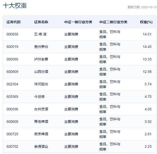 中证酒指数主要权重股