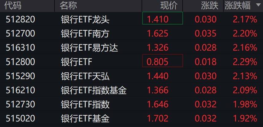 银行股盘中走强,招商银行、农业银行、江苏银行涨超3%,兴业银行、工商银行、浦发银行涨超2%。