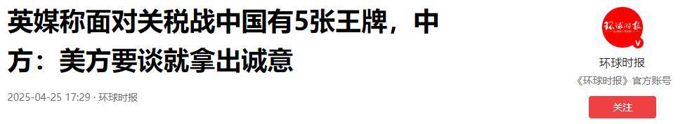 原创 中国为何不怕美国关税?英媒:中国有4张王牌,其中有一张最致命