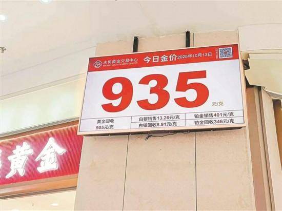 10月13日,黄金价格首次突破每盎司4130美元,单日大涨超3%再创历史新高,今年以来,黄金价格已累计上涨近60%。记者来到深圳水贝,发现市场上黄金批发价格已涨至935元/克,回收价格涨至905元/克。