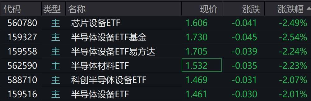 受盘面影响,多只半导体设备相关ETF跌超2%。
