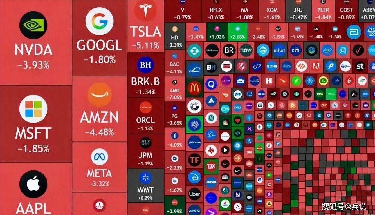 因此,在特朗普刚刚放出狠话后不久,美国股市就陷入暴跌,爆发严重抛售,一夜之间,美国股市仅仅是英特尔等七大巨头,一夜之间便蒸发了5万亿,美国更是全面跳水,绿油油一片。