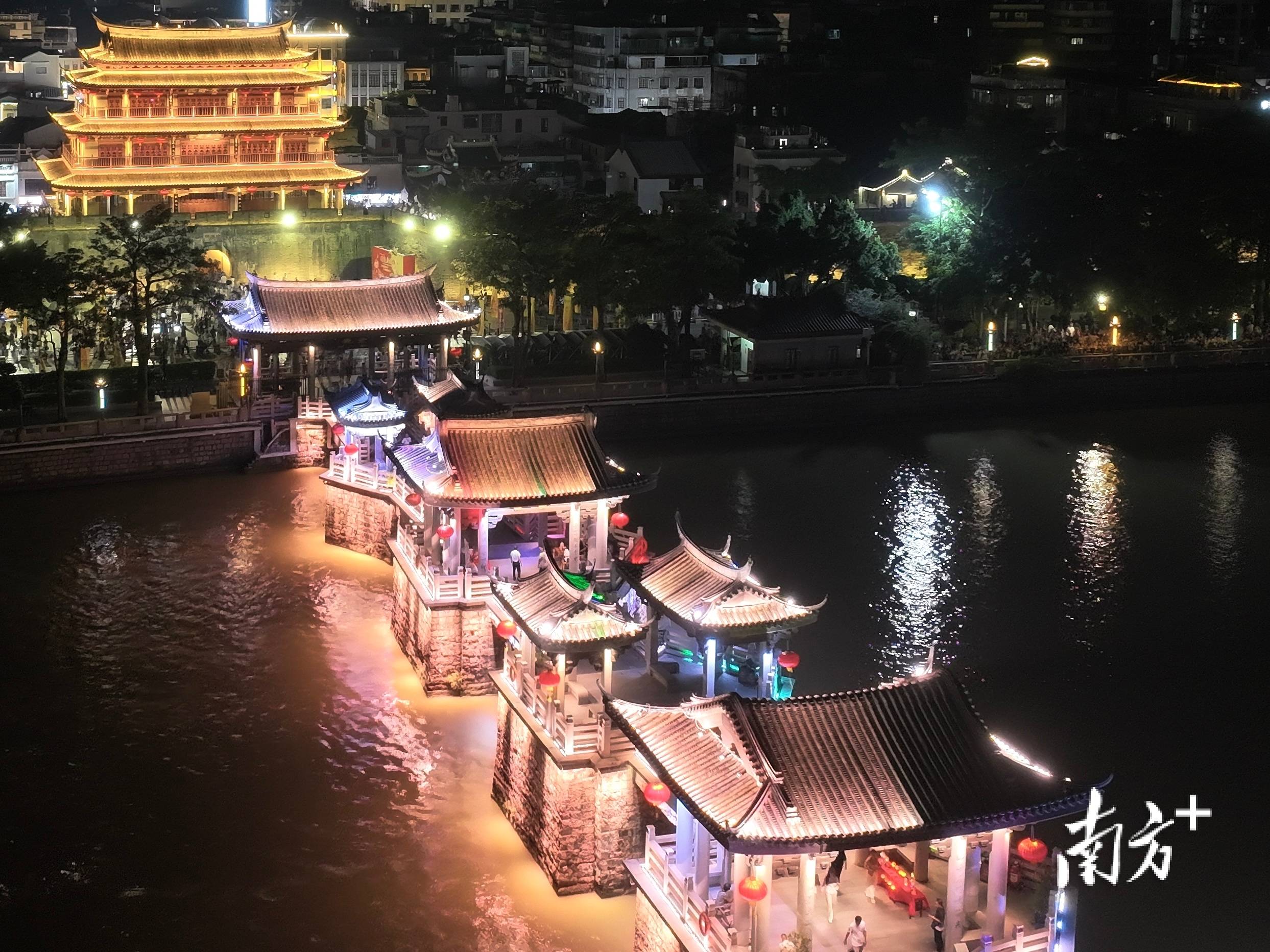 “双节”期间,广济桥重修后首次开放夜游。刘梓薇 摄
