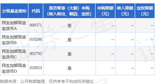 注:(1)根据法律法规和基金合同的规定,民生加银基金管理有限公司(以下简称“本公司”)决定自2025年10月20日起,本基金调整个人投资者大额申购、大额转换转入、大额定期定额投资业务限额,即个人投资者单日单个基金账户累计申购(含转换转入、定期定额申购,下同)本基金的金额不应超过20,000,000元。如个人投资者单日单个基金账户单笔申购本基金的金额超过20,000,000元(不含),则20,000,000元确认申购成功,其余部分本公司有权部分或全部拒绝;如个人投资者单日单个基金账户多笔累计申购本基金的金额超过20,000,000元(不含),则对该基金的申请按照申请金额从大到小排序,本公司将逐笔累加至不超过20,000,000元限额的申请确认成功,其余交易申请本公司有权部分或全部拒绝。