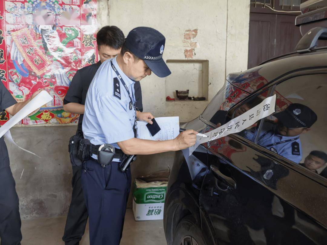法院干警张贴封条,扣押被执行人车辆。