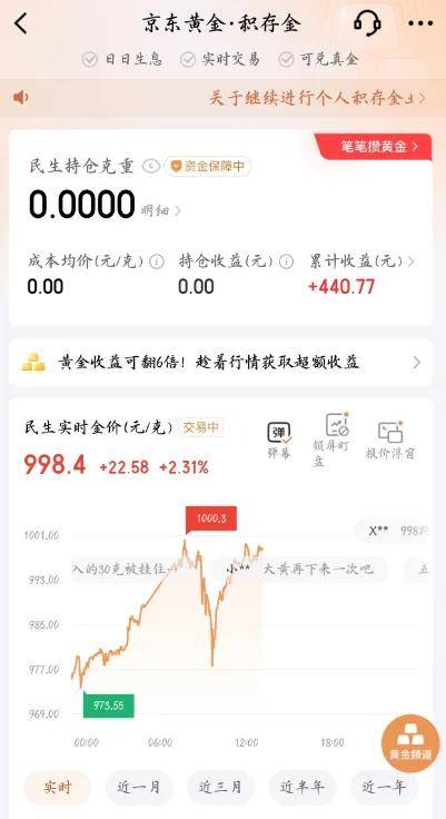 前天在910左右买入1克试水,结果又涨到1000,现在谁也不知道黄金的尽头在哪里了。