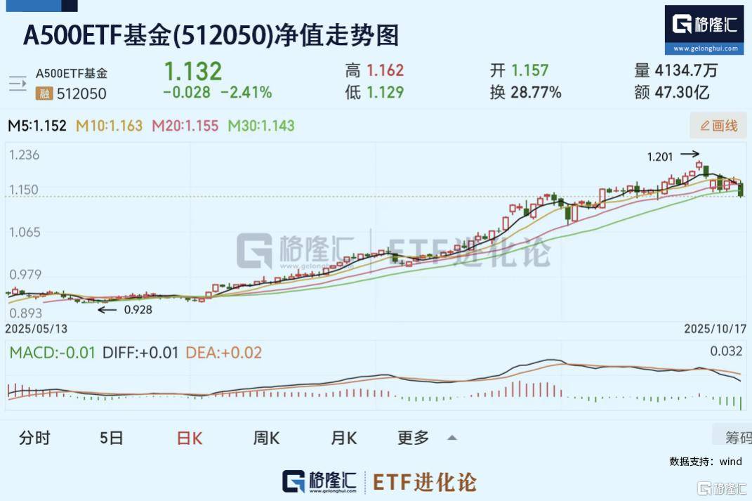 1、A500ETF基金(512050)本周下跌3.17%
