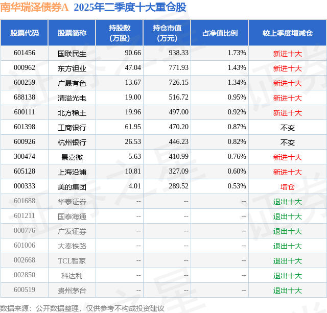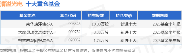 根据2025基金半年报公募基金重仓股数据,重仓该股的公募基金共3家,其中持有数量最多的公募基金为南华基金的南华瑞泽债券A。南华瑞泽债券A目前规模为4.5亿元,最新净值1.1392(10月16日),较上一交易日下跌0.36%,近一年上涨18.08%。该公募基金现任基金经理为徐超 姜杰特。徐超在任的基金产品包括:南华瑞盈混合发起A,管理时间为2024年12月30日至今,期间收益率为0.59%;南华丰淳混合A,管理时间为2024年12月30日至今,期间收益率为37.9%;南华科技创新混合发起A,管理时间为2025年9月24日至今,期间收益率为-3.46%。姜杰特在任的基金产品包括:南华同业存单指数7天持有,管理时间为2024年4月13日至今,期间收益率为2.01%;南华瑞利债券A,管理时间为2024年9月26日至今,期间收益率为4.82%;南华价值启航纯债债券A,管理时间为2025年1月8日至今,期间收益率为-0.16%。