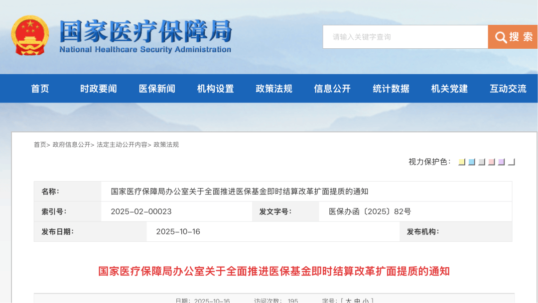近日,国家医保局发布通知,全面推进医保基金即时结算改革扩面提质。