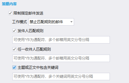 邮件三重管控:记录每一封外发邮件的内容、收件人、时间;仅允许向指定邮箱地址发送邮件;设置邮件白名单/禁用列表。