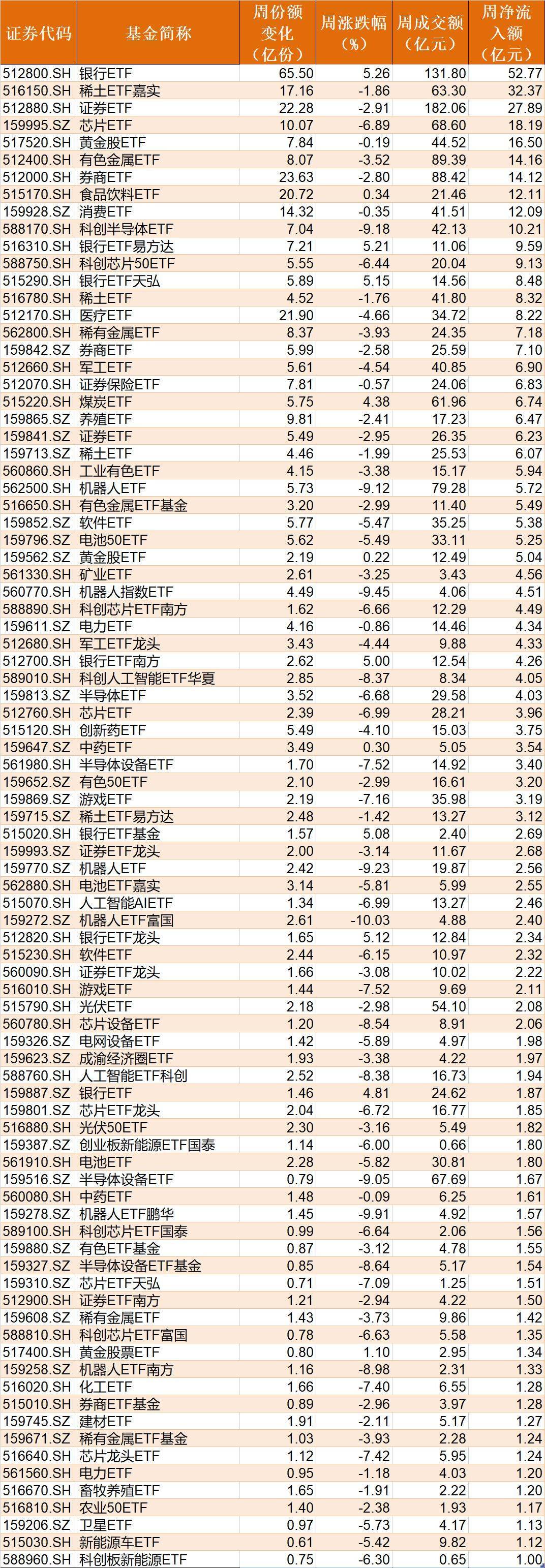 银行、稀土等ETF受资金追捧