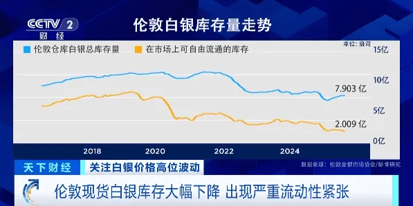 根据彭博社的计算,目前市场上可自由流通的库存仅剩大约2亿盎司,与2019年峰值时期的大约8.5亿盎司相比,锐减了大约75%。