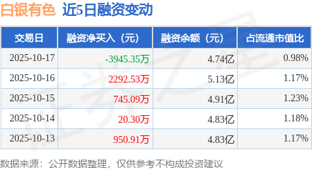 白银有色:10月17日融券卖出19.19万股,融资融券余额4.88亿元