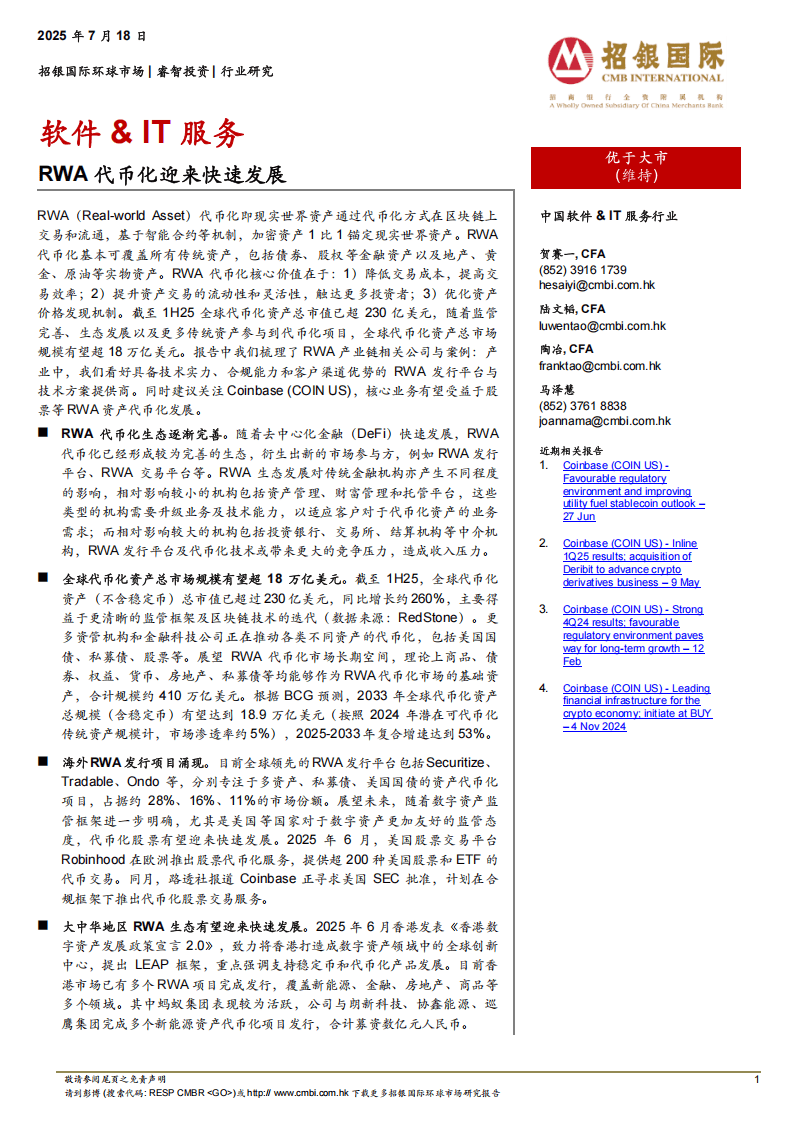 今天分享的是:RWA代币化迎来快速发展-招银国际