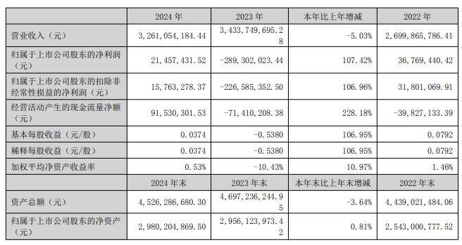 经纬辉开2024年年度报告显示,公司报告期内营业总收入为32.61亿元,同比下滑5.03%;归属于上市公司股东的净利润为2145.74万元;归属于上市公司股东的扣除非经常性损益的净利润为1576.33万元;经营活动产生的现金流量净额为9153.03万元。