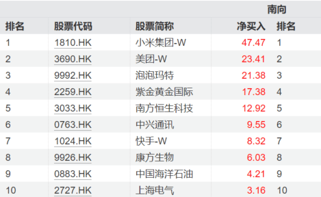 南向资金方面,近7日南向资金大举流入港股科技龙头,小米集团以超47亿港元居净买入榜首,美团-W、快手-W也均位居近7日南向资金净买入榜前十!